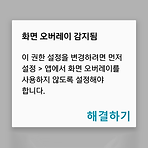 * 이 글은 개발자를 위한 글입니다. → 일반 사용자라면 "블루라이트 어플" 등 화면 제일 위에 있는 앱을 종료한 뒤 다시 권한을 요청해보세요. 마시멜로우 이상의 안드로이드에서는 특정 기능을 사용하기 위해 사용자의 허가를 받아야만 합니다. 근데 가끔 이 허가를 받으려고 하는데 "화면 오버레이 감지됨"이라는 문구가 뜨면서 허가가 안되는 경우가 있죠. 인터넷을 찾아 봐도 정확히 어떤 것이 원인인지에 대한 얘기는 별로 없더라구요. "화면 오버레이 감지됨"은 말 그대로 화면을 다른 무언가가 덮으려고 한다는 의미입니다. 여기서 덮는다는 것은 꼭 화면 전체가 아니라 일부만 덮어도 덮는다는 얘기입니다. 안드로이드에서 화면을 덮는 것이 뭐가 있을까요? 잠깐만 생각해봐도 쉽게 알 수 있는 것들입니다. 1. 항상 화면의 ..